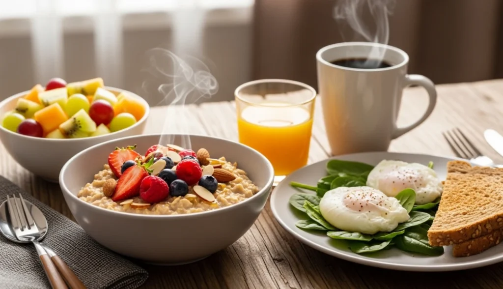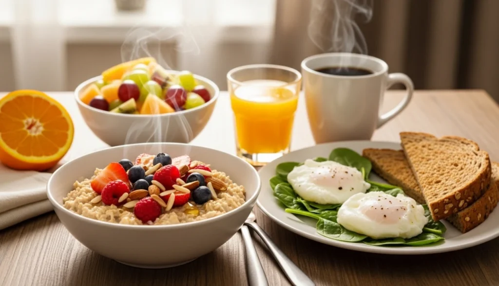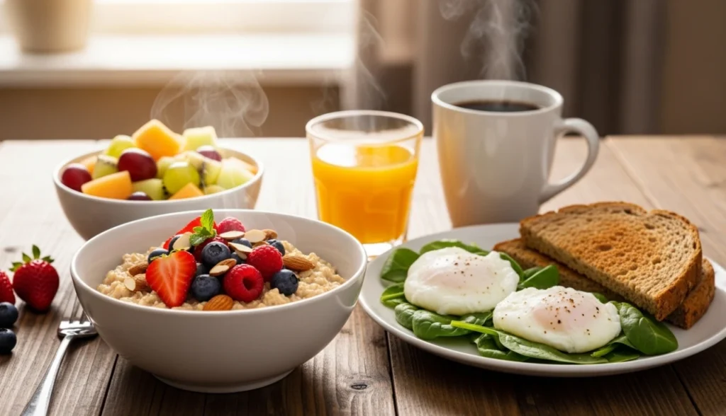 Planejar o café da manhã ajuda a evitar escolhas ruins. Com um plano, sua mente e corpo recebem nutrientes importantes sem estresse.